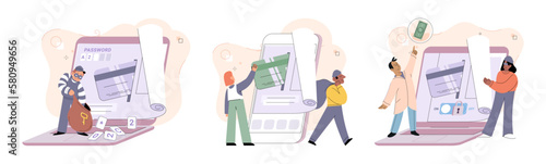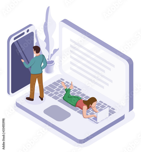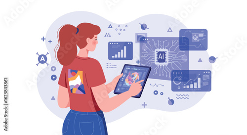 Obesity and weight problems. Hungry overweight woman standing in front of open refrigerator, flat vector illustration. Girl eating at night. Gluttony. Unhealthy lifestyle. Weight gain.