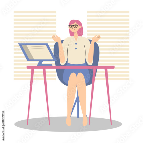 Obesity and weight problems. Sad overweight woman in underwear looking at herself in the mirror, flat vector illustration. Unhealthy eating and lifestyle. Dysmorphophobia.