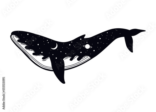 Ocean pollution, vector illustration in layered paper art style. Double exposure jumping dolphin silhouette with marine animals and floating plastic trash.