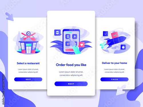 Office accessories and business stuff. Mobile app onboarding screens. Menu vector banner template for website and mobile development. Web site design illustration.