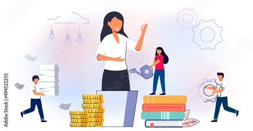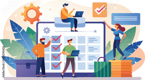 Huge office diary and micro business people making schedule and notes in order to fulfill tasks in time. Business and finanace, time management and planning concept for web banner, website page etc.