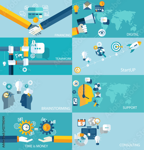 Office golf landing page design, website banner template set, flat vector illustration. Business people playing mini golf in office during the rest and work break. Active and healthy lifestyle.