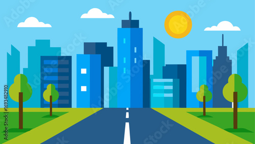 Office interior and business team design concept. Vector illustration in paper cut style. People in office with city buildings on background.