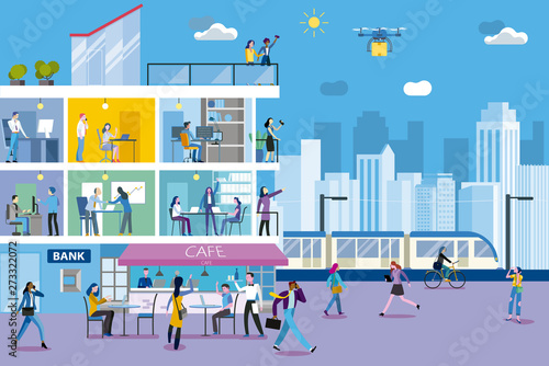 Vector illustration of business people giving presentation, meeting, dealing, signing contracts with partners. Office life concept, flat style design.