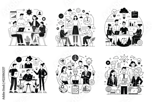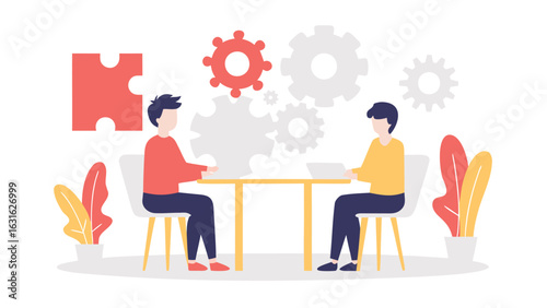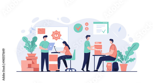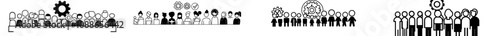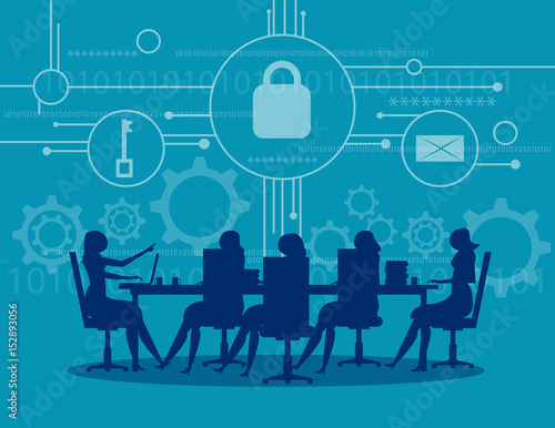 Office life scene, vector illustration in paper art modern craft style. Paper cut business people silhouettes on steampunk style clock mechanism background. Work like clockwork concept for poster etc.