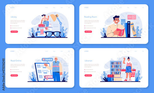 Office meeting landing page design, website banner template set, flat vector illustration. Business people engaged in discussion sitting at table. Brainstorm, office workshop, teamwork.