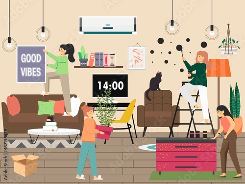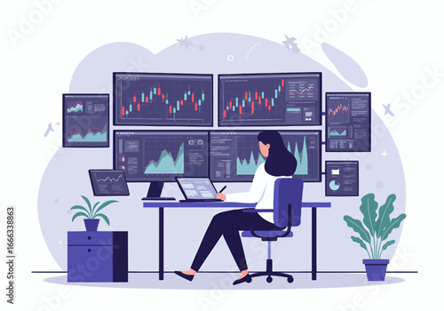 Office people working on computer, giving presentation, planning, managing work with scrum kanban board, flat vector illustration. Agile teamwork, agile project management, workflow.