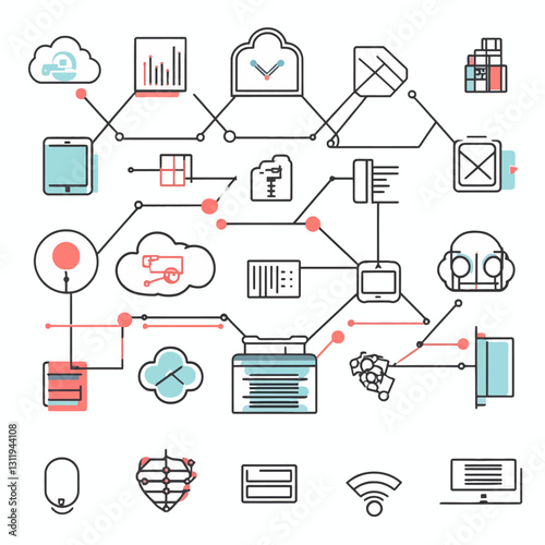 Office seamless pattern. Vector modern thin line flat design with business symbols.