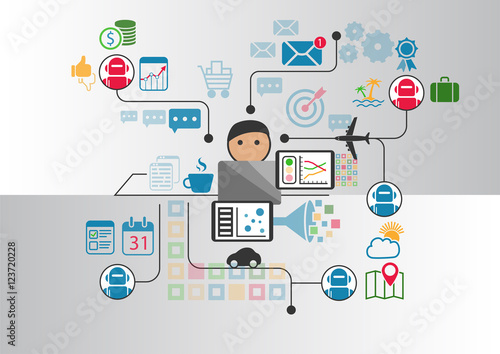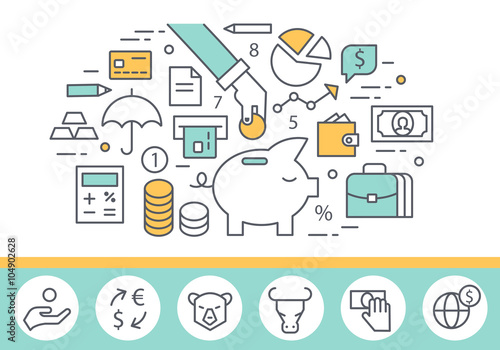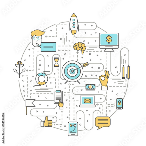 Office team circle vector illustration. Modern thin line flat style design element with business symbols for website banners and printed materials.