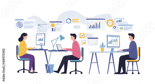 Office team vector website template, web page and landing page design for website and mobile site development. Teamwork, cooperation concept, paper art craft style.