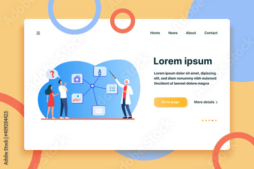 Office vector website template, web page and landing page design for website and mobile site development. Business workflow management, office situations, data analysis concepts.