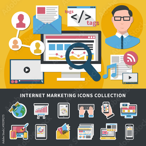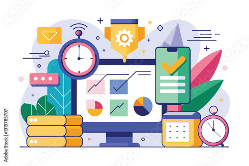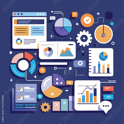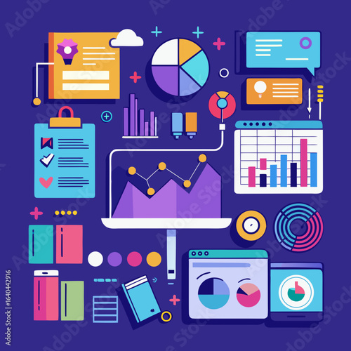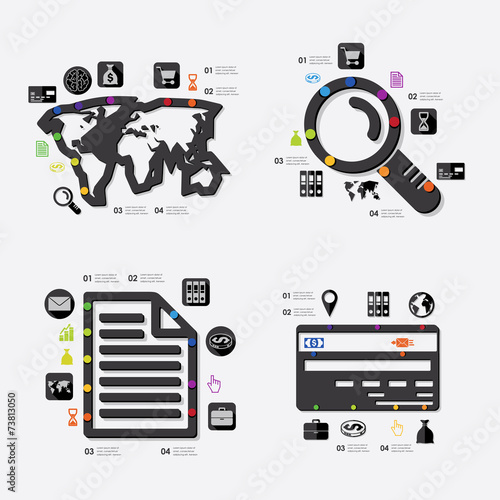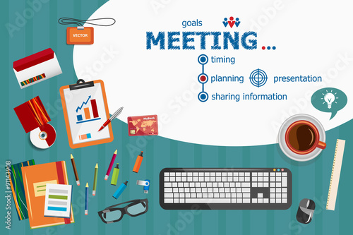 Office work vector poster template set. Modern workplace with computer, tablet, stationery, business people involved in daily work, office routine. Flat style design illustration for flyer, banner etc
