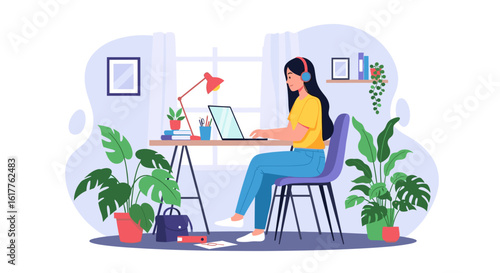 Office yoga and meditation, vector flat illustration. Girl taking rest, meditating sitting in lotus yoga pose, getting energy like charging battery, man throwing computer briefcase in office waste bin