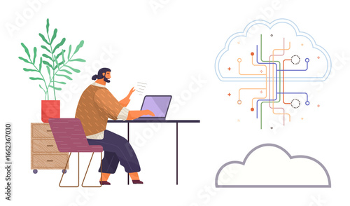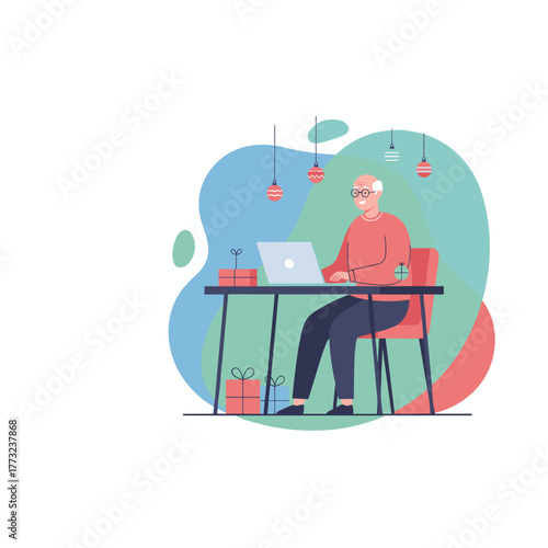 Old person vector. Aged man painting on canvas scene. Retired painter artist. Hobby and leisure on retirement. Art class for elderly people