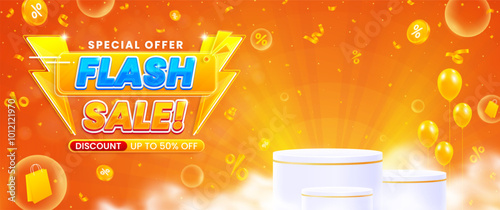 Omega 3 fish oil supplements advertising vector poster banner template. Omega-3 fatty acids plastic bottle with label and softgel balls.