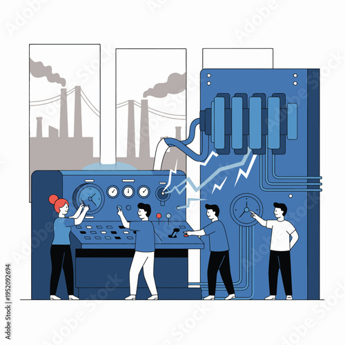 Business people making financial transactions online using huge smartphone with mobile banking application, vector flat style design illustration. Online bank, money transfer, electronic payment.