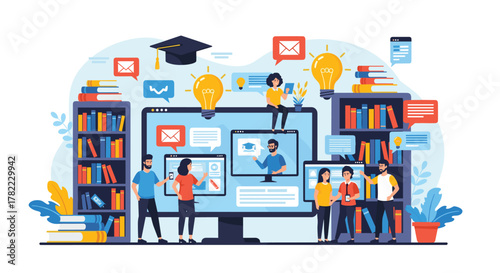 Online casino gambling set, vector illustration isolated on white background. People playing internet slot machine game, poker roulette blackjack from smartphone, tablet, laptop and desktop computers.
