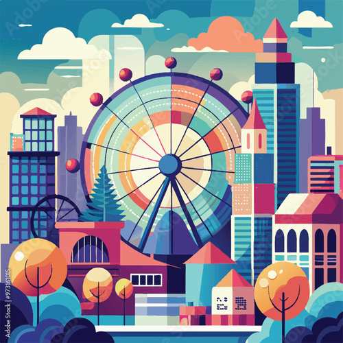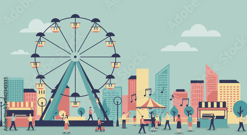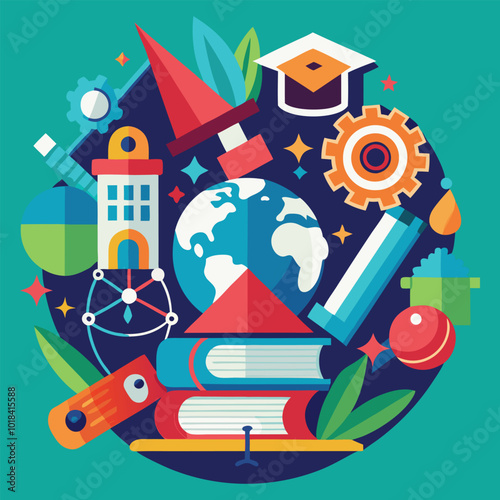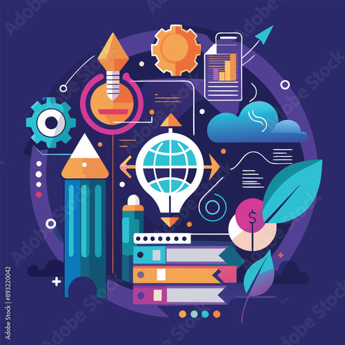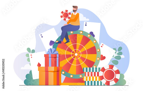 Online casino concept vector flat illustration. Roulette wheel, slot machine game on computer screen, red and green dices, dollar coins, wallet with money. Internet casino gambling poster, banner.