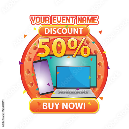 Online casino vector poster banner design template. Laptop, roulette wheel, playing cards, slot game, poker chips, dices, dollar coins, trophy cup. Online gambling concept.
