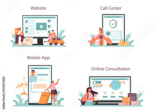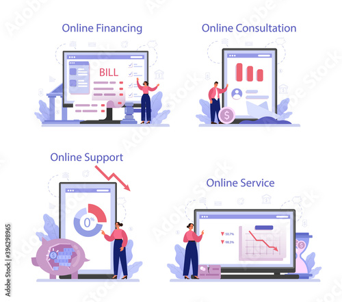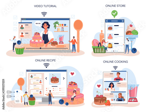 Online coach, fitness trainer set, flat vector isolated illustration. Healthy diet plan and home fitness, workout, training. Video blog. Weight loss, healthy lifestyle.