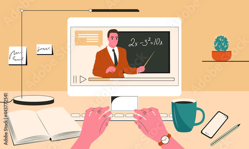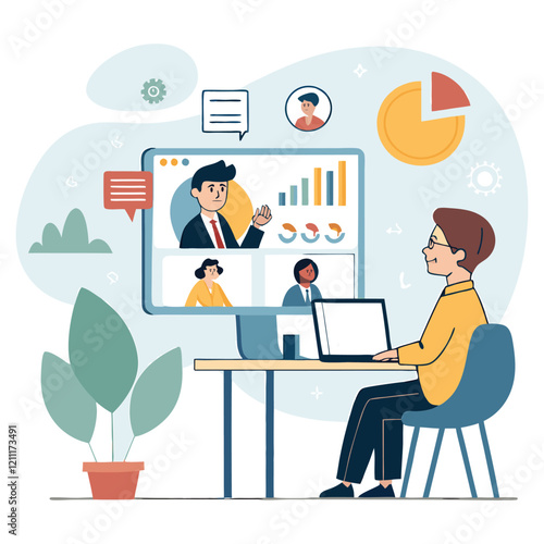 Online communication between two male friends, flat vector illustration. Boys chatting and drinking beer. Online beer party, virtual meeting, live chat video call. Social distancing.