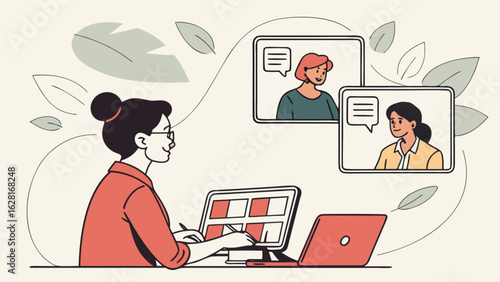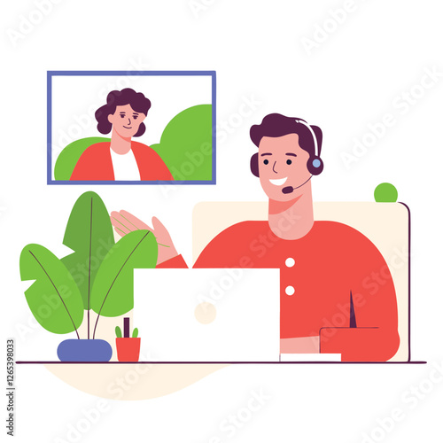 Online conversation between young couple over the internet, flat vector illustration. People with chat bubbles, envelope sending and receiving messages. Online communication.