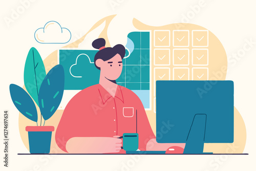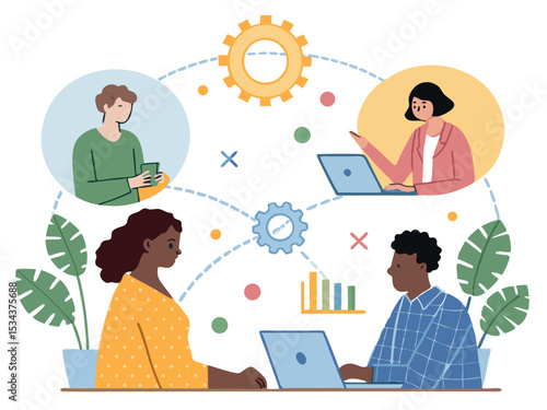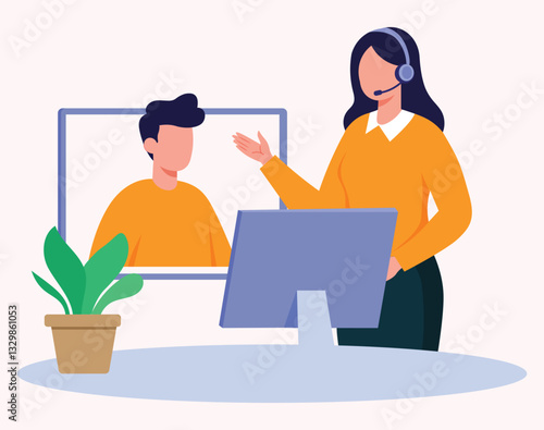 Online conversation between young couple over the internet, flat vector illustration. People with chat bubbles, envelope sending and receiving messages. Online communication.