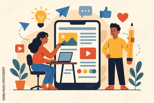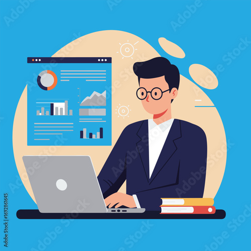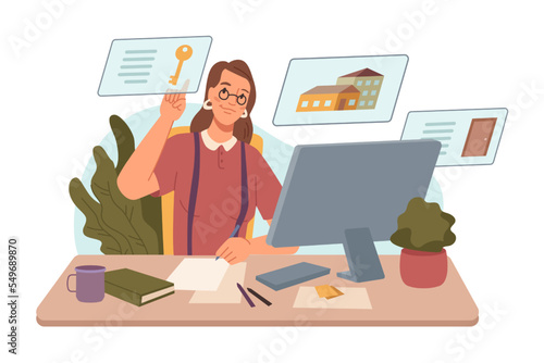 Online detective professional service vector illustration. Agent character investigating crime. Mobile call, clues and offender personal file, photo camera on book stack flat cartoon design