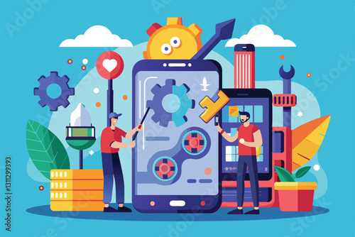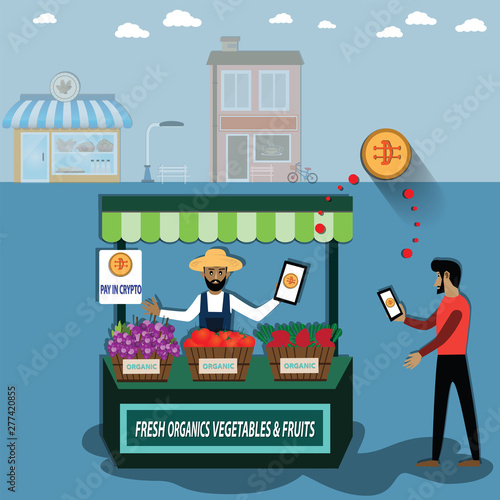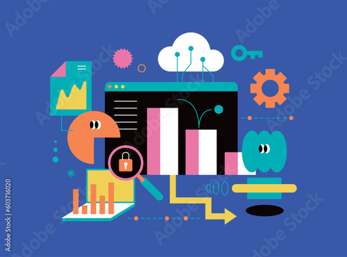 Online exchange vector flat illustration. Computer with candlestick charts on monitor, hand with money, wallet and dollar coin, scales, etc. Stock exchange market set for web banner, website page etc.