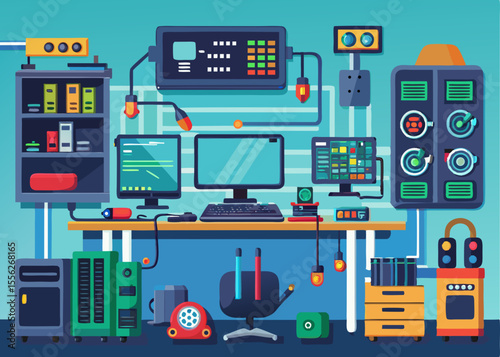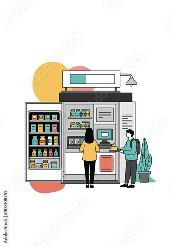 Street food kiosk and huge smartphone with credit card, navigation map on screen, vector flat illustration. Fast food delivery and takeaway, mobile ordering and payments.