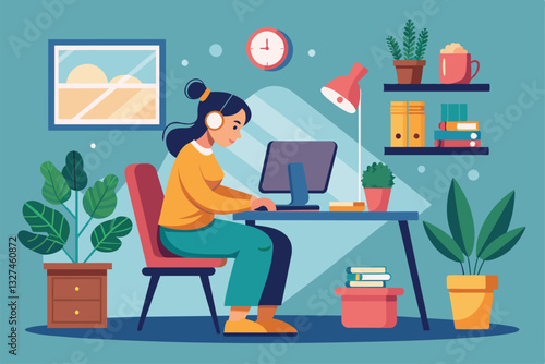 Online flight booking vector illustration. Man using computer and via internet to make a reservation of ticket flat style design element.