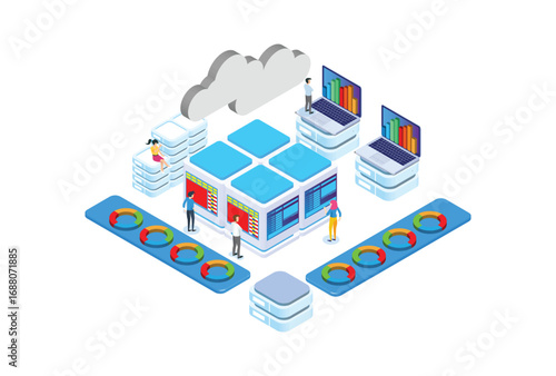 Online flower shop in isometric style design. Buy flowers on internet using mobile smartphone with fast delivery and credit card payments. Isometric 3d isolated icons.