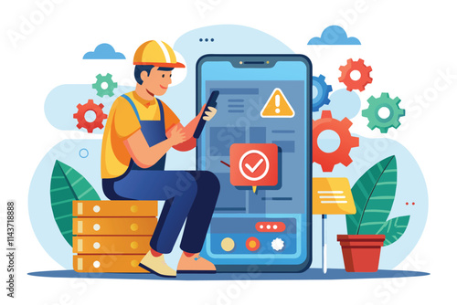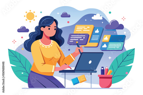 Woman buying grocery products in online mobile store, vector flat illustration. Online grocery shop, internet purchase, e-commerce concept.
