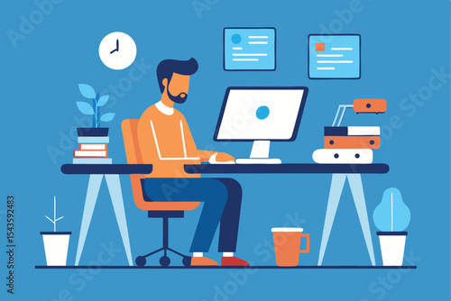 Online hotel booking vector illustration. Man making reservation of hotel room. Hotel people flat style design element, icon isolated on white background.