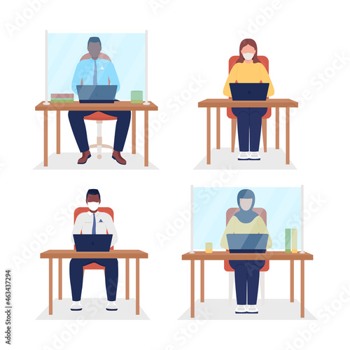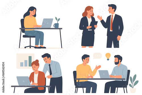 Online job interview character set, vector flat isolated illustration. Hr managers interviewing job candidates. Human resources, hiring, employment, video interviewing, modern communication technology