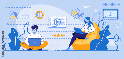 Online meeting landing page design, website banner template set, flat vector illustration. Video conference technology, webinar, video call, distance education.