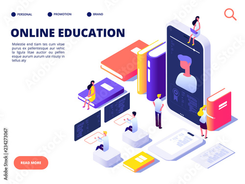 Online osteopathy medicine courses and training, flat vector isometric illustration. Osteopathy, chiropractic, manual therapy. Career, distance learning, online education.