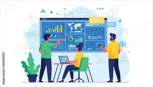 Online photo editing and retouching service, flat vector illustration. Male characters photographers retouching real life photo of young girl.