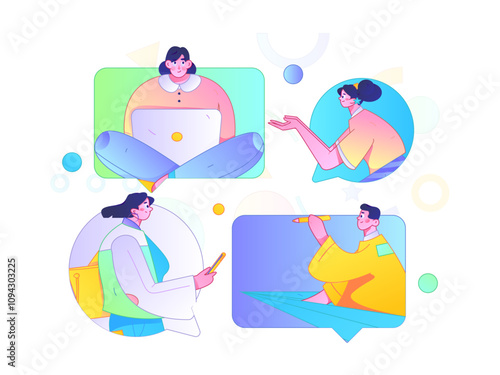 Online psychological help service, vector flat illustration. Psychotherapy session with professional online counselor psychotherapist counseling patient female having emotional, family problems etc.