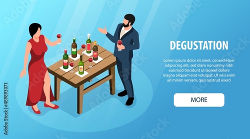Online reserved restaurant table concept. Vector isometric illustration of smartphone with couple sitting at restaurant table, waiter serving coffee, tea, cake slice and reserve button.