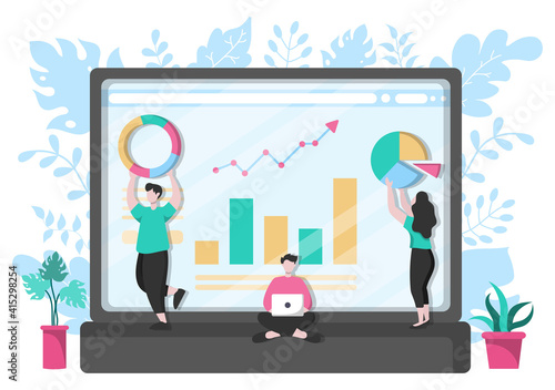 Vector illustration of big mobile phone and tiny people purchasing fashion goods in internet shop. Mobile commerce apps for online bag, shoe stores, online shopping concept for web banner, webpage.