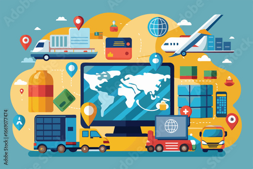 Best online shopping offers, vector flat illustration. Gift box, 70 percent hot sale text on big computer monitor screen and tiny characters. Internet store discounts concept for web banner etc.