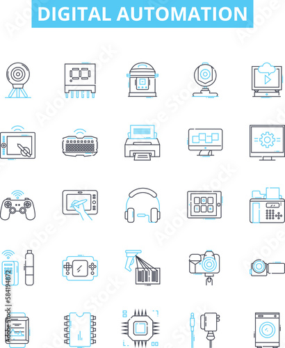 Vector seamless pattern with decorative online shopping symbols, icons. E-commerce background, wrapping paper texture thin line art flat style design.