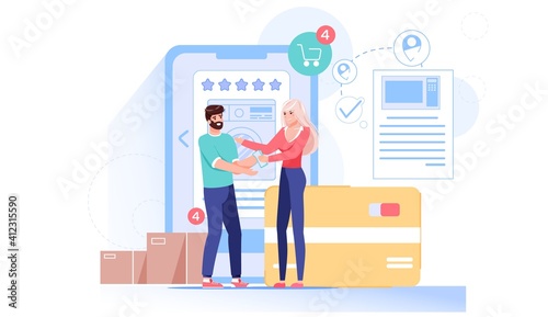 Online clothing shop, internet store application on mobile phone screen, credit card, wallet, vector flat illustration. Online shopping, e-commerce, mobile payments composition.