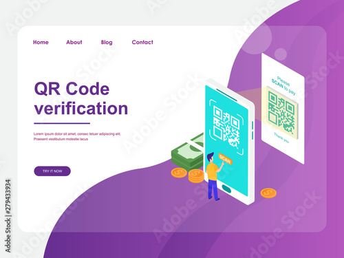 Online shopping landing page template for website and mobile site development. Vector isometric smartphone, woman with shopping cart with bags, gift box. Mobile marketing, e-commerce web page concept.
