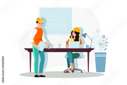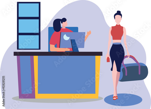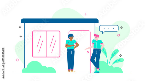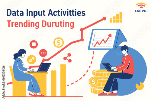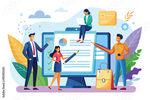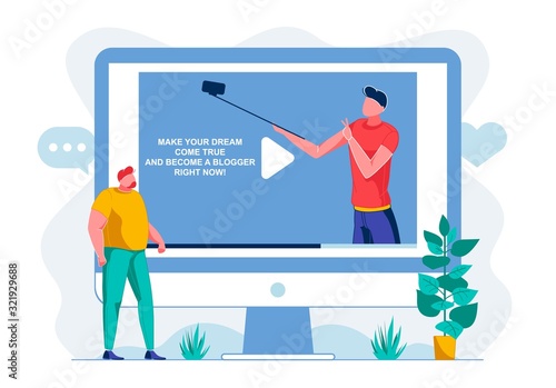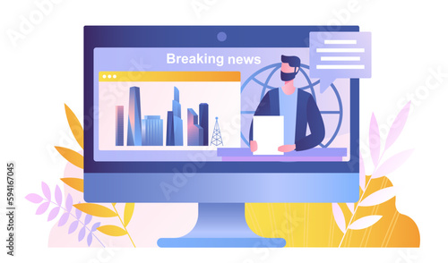 Online stock exchange, vector flat style design illustration. Candlestick chart on big laptop screen, tiny characters. Stock trading concept for web banner, website page etc.
