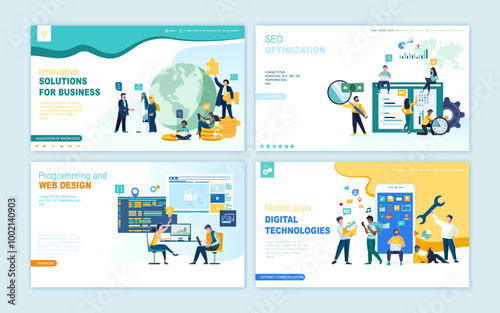 Online training landing page website template. Vector isometric illustration. Online webinar, e-learning, distance education, video tutorials concept.