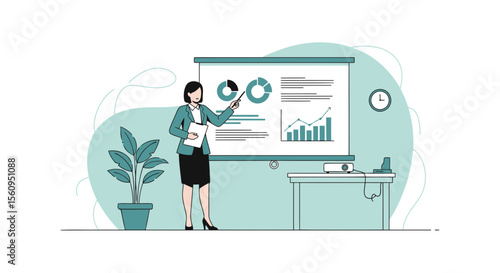 Girl with headphones and smartphone doing warrior 2 yoga pose at home together with online coach on mobile screen, vector flat style design illustration. Online classes for yoga and meditation.