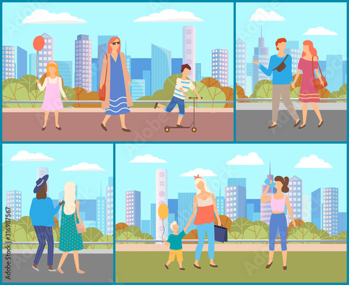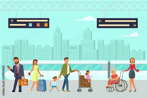 Vector illustration of musicians keyboardist, guitarist and singer performing on outdoor concert stage. Open-air concert, music festival concept flat style design element.