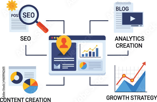 Open book with school and science symbols, flat vector illustration. Knowledge. School and education.